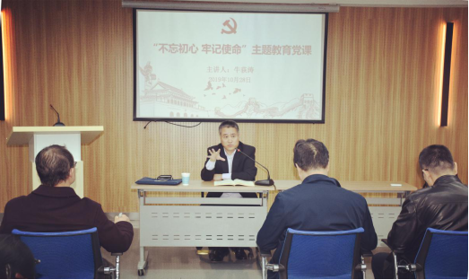 牛荻涛围绕主题教育开展的重大意义、总体要求、目标任务等方面,结合个人学习和前期调研,从三个部分进行讲授,为大家上了一堂深刻而又生动的党课。