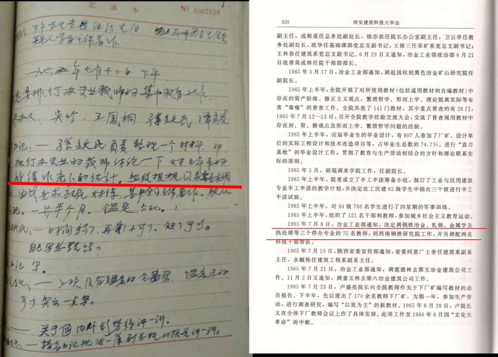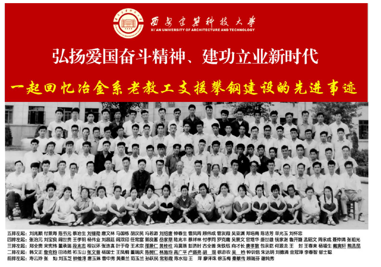 1964年冶金工业部为支持三线钢铁企业建设在辽宁鞍山建立鞍山钢铁研究院,同年10月,国家科委、国家计委决定将鞍山钢铁研究院内迁四川西昌,更名为冶金部西南钢铁研究院。为支援三线建设,1965年7月8日,冶金工业部决定调动西安冶金建筑学院钢铁冶金、轧钢、金属学及热处理等相关冶金专业老师到西南钢铁研究院工作,接到调令后,学校安排冶金系75名教师和2名科级干部,放下教学科研任务奔赴四川西昌工作,为攀钢建设贡献青春和力量。