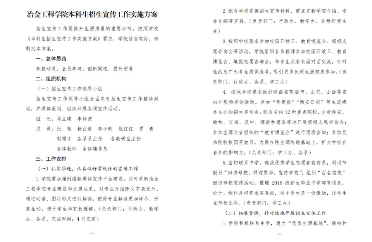 制定《冶金工程学院本科生招生宣传工作实施方案》