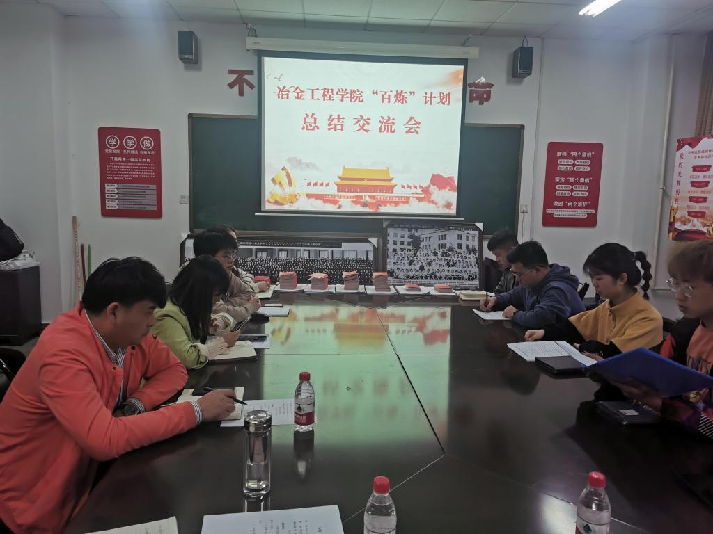 在“有金在冶”党员活动室(工科大楼103室)召开“百炼”计划总结交流会,学院党委书记马立建、副书记、副院长张佩、党委委员、学工办主任赵福才、全体学生党支部支委委员和“百炼”计划优秀党员代表等共31人参加了会议,会议由赵福才主持。