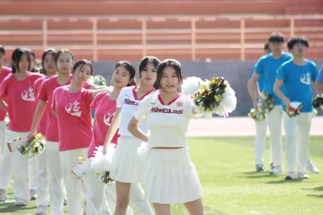 拱门造型定格,十五位女同学携啦啦操solo活力登场。她们踏着明快节拍闪亮亮相,身姿矫健昂扬,动作干脆利落、舒展有力,以热情洋溢的舞姿点燃全场氛围。