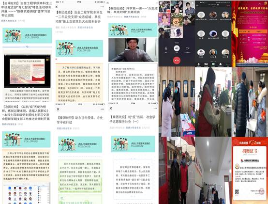 学生党支部在学院党委的指导下,主动作为,勇于创新,不断探索“互联网+党建”的组织生活模式,围绕“奉献担当 共克时艰”主题,开展了线上理论学习、支部引领优良学风建设、党员争当学风典范、一方有难八方支援献爱心、精准就业、考研帮扶等系列活动,扎实推进各项党建工作任务,取得了良好效果。我院广大学生党员积极响应党中央号召,开展了“众志成城抗疫情、担当作为献爱心”的抗疫捐赠和志愿服务活动,以实际行动支持疫情防控工作。全院学生党员捐赠率达98.56%,入党积极分子、发展对象和非党员学生捐赠人数近百人。新冠病毒疫情暴发以来,各党支部动员组织30余名党员同志参与当地基层疫情防控工作,累计工作时间1000余小时,让西建大小说狂人