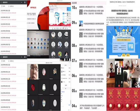 各团支部通过腾讯会议、QQ电话、腾讯课堂等平台,采用线下与线上活动相结合的方式,开展了“众志成城、共克时艰”网络主题班会、 观看学习“疫情防控思政大课”、“众志成城抗疫情,志愿服务献爱心”学雷锋志愿服务、“青年大学习”、“秦团战疫—朝阳志愿服务队在行动”等系列活动,教育引导广大团员青年积极参与到疫情防控阻击战之中,全院各团支部累计开展主题团日活动200余次,80余人次团员青年参与所在社区疫情防控工作,筑起坚决打赢疫情防控的人民战争、总体战、阻击战的青春长城。