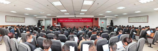 党员代表大会在工科大楼1111报告厅召开,校党委常委、副校长雷鹏出席会议并讲话,校纪委副处级纪检监察员曹体进到会指导督导,学院105名党员代表参加会议。会议由学院党委副书记张佩主持。