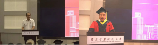 研究生毕业生代表张凯同学、本科毕业生代表陈冬同学分别发表毕业感言。两位毕业生代表首先向学校、学院和老师们的精心培养表示了由衷的感谢,他们希望冶金工程学院学子踏出校门后继续追光而上、沐光而行,传承百年建大学术立校、自强报国的学术理念和爱国奉献、艰苦奋斗、实干担当的冶金精神。