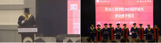 典礼伊始,冶金工程学院院长李林波教授致词。他肯定了同学们为冶金工程学院取得的成绩,在今后的道路上同学们要厚植爱国情怀,传承冶金精神,砥砺奋斗之志,勇担时代使命。与此同时,向同学们提出了三点希望:一是希望同学们前路无惧有勇气,在逆境中坚韧自强,在起伏中豁达宽容;二是希望同学们志存高远有志气,以天下为己任,做国之栋梁;三是希望同学们行走无疆有底气,终身学习,练成过硬本领。最后李林波院长祝愿各位毕业生一帆风顺,前程似锦。