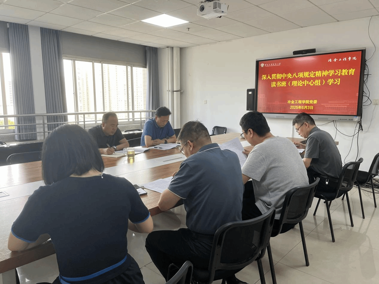 6月3日下午,冶金工程学院党委理论学习中心组在工科大楼1102会议室开展深入贯彻中央八项规定精神学习教育读书班学习,党委书记马立建主持本次学习。