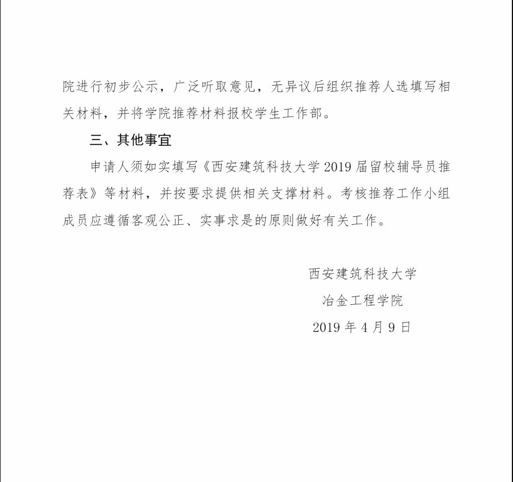 冶金工程学院关于选聘2019届毕业研究生担任辅导员的通知