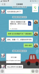 杜忠泽老师通过微信语音会议的形式组织毕业论文讨论,是杜忠泽老师课题组的假期常态,每一位同学就自己的完成进度以及内容进行报告,大家围绕报告内容进行深入讨论,并提出完善意见,推进进度。王伟老师在假期给同学们布置了学术任务,并通过微信给予了大家远程指导。在此期间,他也一直在师门群里鼓励大家利用假期时间学习、休息,在疫情防控期间保重身体。