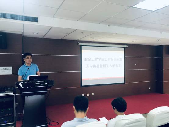 冶金工程学院2019级研究生开学典礼于9月10日在工科楼1111会议室顺利开展,冶金学院科研副院长李小明教授,冶金学院研究生科研办秘书刘漫博老师、研究生18级辅导员郭艳萍老师、19级辅导员徐瑞朝老师、为新生讲解实验室安全“开学第一课”的罗雷老师以及2019级全体研究生出席典礼。典礼由刘老师主持。