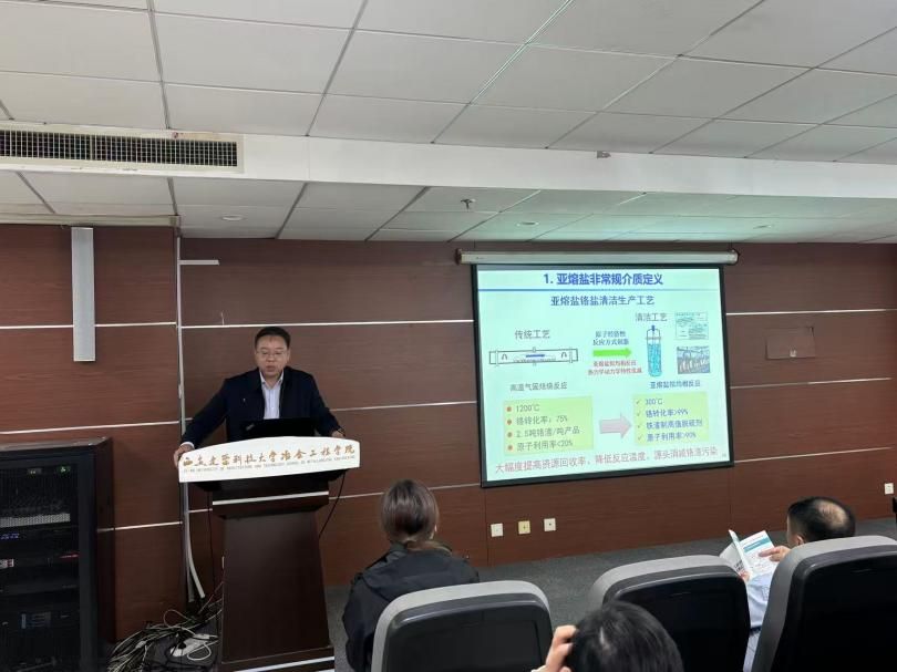 随后,郑诗礼教授带来“亚熔盐湿法冶金”主题报告。郑教授凭借在湿法冶金领域的深耕,结合110余项授权专利及270余篇学术论文的研究积累,详解亚熔盐技术的创新应用,为相关领域发展提供新思路,其成果亦曾获国家技术发明二等奖。