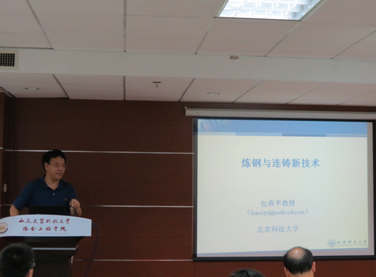 2015年6月18日,自北京科技大学包燕平教授来我院作学术交流,晚19:40在工科楼1111,为我院学生主讲关于《炼钢与连铸新技术》报告会。