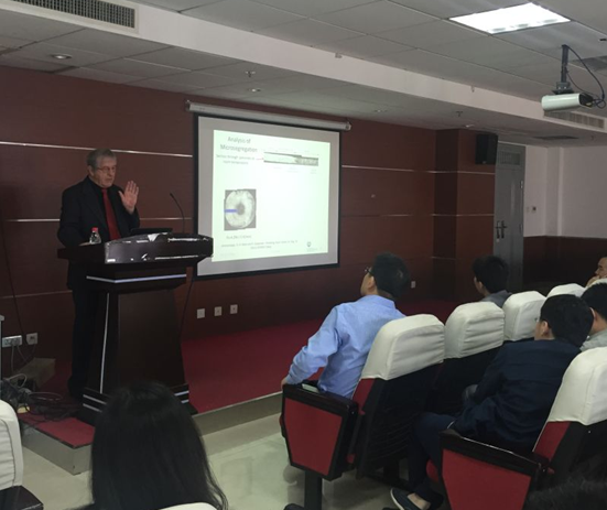 2016年5月16日上午九点半,应西安建筑科技大学冶金学院邀请,澳大利亚著名教授Rian Dippenaar莅临我校做学术报告,冶金学院部分教师、研究生和博士生参加报告会。此次报告由冶金工程学院院长王快社教授主持,Rian Dippenaar 教授报告题目为“The wonderful world of high-temperature laser-scanning confocal microscopy”。