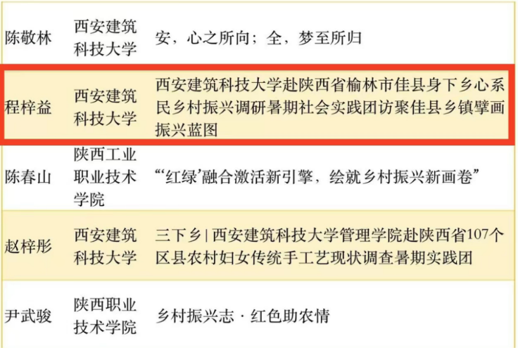 近日,中国青年报社主办2023大学生社会实践成果“千校千项”网络展示活动评选结果正式出炉。由我院学子组建的西安建筑科技大学赴陕西省榆林市佳县“身下乡,心系民”乡村振兴调研暑期社会实践团荣获“千校千项”优秀视频奖。