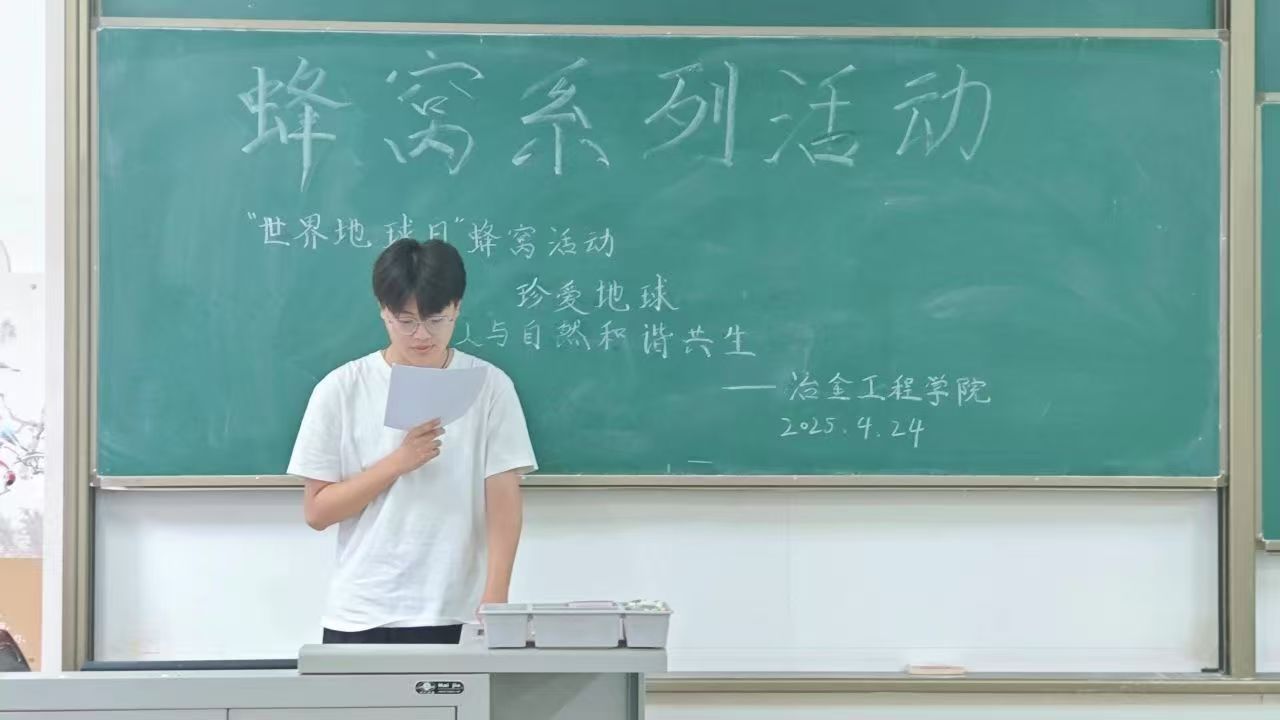 为深化生态文明教育,提升学生环保意识,冶金工程学院于4月24日18:30在学府城9-108教室举办“世界地球日”主题蜂窝活动。本次活动紧扣“珍爱地球,人与自然和谐共生”的主题,通过知识科普、案例分享和行动倡议等形式,引领学生积极践行绿色发展理念。