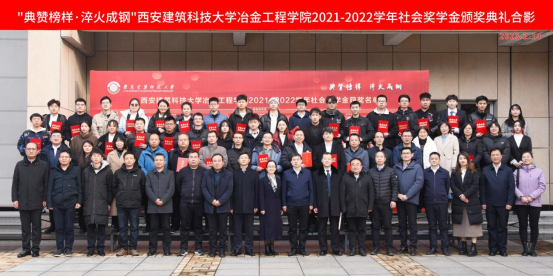 2月14日上午,“典赞榜样·淬火成钢”西安建筑科技大学冶金工程学院2021-2022学年社会奖学金颁奖典礼在雁塔校区工科楼三楼会议室举行。校党委常委、副校长雷鹏,校董校友会(教育基金会)办公室副主任鲁莉,濮阳濮耐高温材料(集团)股份有限公司副总裁牛亮,饮水思源奖学金发起人代表、冶金工程学院91级校友李高峰,宁波力勤资源科技股份有限公司人事行政部副部长杨一鸣,联合荣大企业集团副总裁兼炼铁事业部总经理赵勇,冶金工程学院党委书记马立建、院长李林波、副院长杨西荣出席此次颁奖典礼,冶金学院获奖师生代表、机关各科(室)负责同志以及部分学生代表参加了典礼。典礼由冶金工程学院党委副书记、副院长张佩主持。