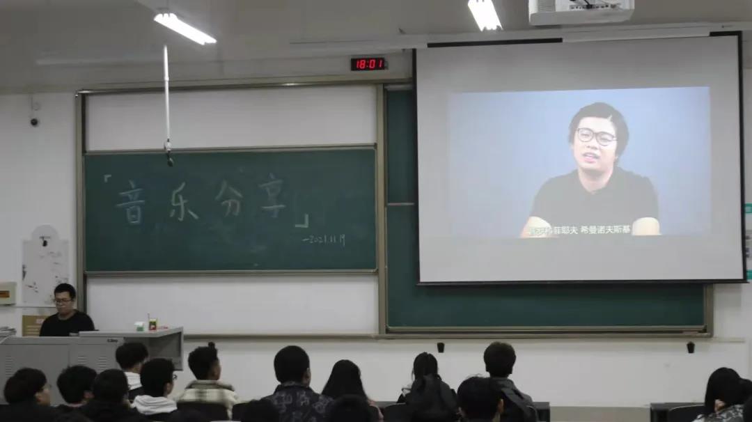 活动开始,孙永亮同学向同学们解释何为古典音乐,他通过播放视频的方式让同学们了解了古典音乐时期的乐器的种类、音乐家以及古典音乐的三个流派——巴洛克流派、古典主义流派、浪漫主义流派的特点以及三者之间的区别。接着孙永亮同学播放了古典音乐《哈利路亚》让同学们感受到了古典音乐的恢弘自然,崇高雄伟。