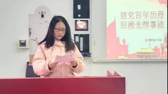 活动开始,组织委员门思蕊带领同学们回顾了建党以来的党史事件,一起学习了党在发展过程中形成的科学理论,感悟了中国共产党在发展过程中经受的巨变,了解了中国共产党建党至今所经历的艰辛历程,增强了同学们的民族自信心。