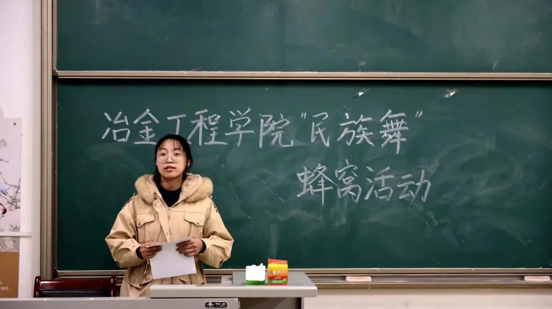 于11月9日18:00在学府城9栋101教室开展了“蜂窝——民族舞”活动。本次活动由金属2101班李国阳同学主持,她带领同学们走进了丰富多彩的舞蹈世界。