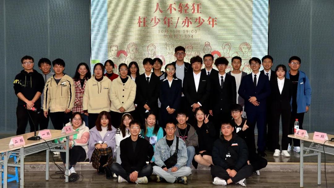 辩论队队长杨泓杉主持。接下来,由材成2103班田欣沂宣布比赛流程和辩题:人不轻狂是枉少年还是亦少年。