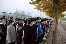 升旗仪式前,国旗卫队全体成员整装列队,肃穆而立,一切准备就绪。参加此次升旗活动的全体同学佩戴团徽,戴好口罩,排列成矩形方阵。随后,庄严而又充满希望的歌曲——《歌唱祖国》响起,旗手及国旗护卫队在歌曲声中正步走来,动作整齐划一,步履坚定自信。接下来,伴随着雄壮有力的国歌——《义勇军进行曲》,升旗手振臂一挥,鲜艳的五星红旗冉冉升起,全体同学满怀崇敬之情向国旗行注目礼,表达对祖国的崇高敬意。