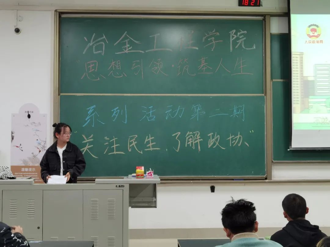 为加强我院学生的思想政治教育,加深同学们对于“两会”的了解。冶金工程学院于3月17日在学府城开展冶金工程学院“思想引领,筑基人生”系列活动第二期——“关注民生,了解政协”。