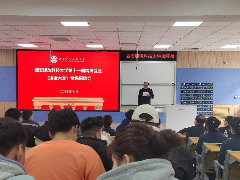 为深入贯彻落实《国务院关于进一步做好新形势下就业创业工作的意见》精神,按照《教育部办公厅关于开展全国普通高校毕业生精准就业服务工作的通知》要求,建立健全精准就业服务机制,立足行业,积极拓展就业平台,努力为毕业生提供精准、高效优质服务,促进毕业生高质量就业,由我校大学生就业指导服务中心主办、冶金工程学院承办的西安建筑科技大学第十一届精准就业(冶金大类)专场招聘会于2023年2月14日下午在雁塔校区东阶201报告厅举行。校学生工作部(处)副部(处)长王凯,冶金工程学院院长李林波,冶金工程学院党委副书记、副院长张佩,冶金工程学院副处级辅导员、2023届研究生辅导员赵福才,冶金工程学院学工办主任康彦,冶金工程学院团委书记华如兵,2023届本科生辅导员董甜子,各用人单位招聘代表以及2023届毕业生参加会议,冶金工程学院党委副书记、副院长张佩主持会议。