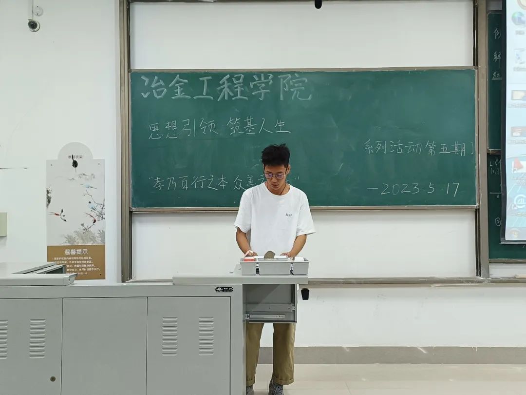 为弘扬中华民族传统文化,让孝道深入人心,冶金工程学院于5月17日18:40在学府城开展“孝乃百行之本,众善之初也”系列思想引领活动,2021级、2022级全体本科生参加。