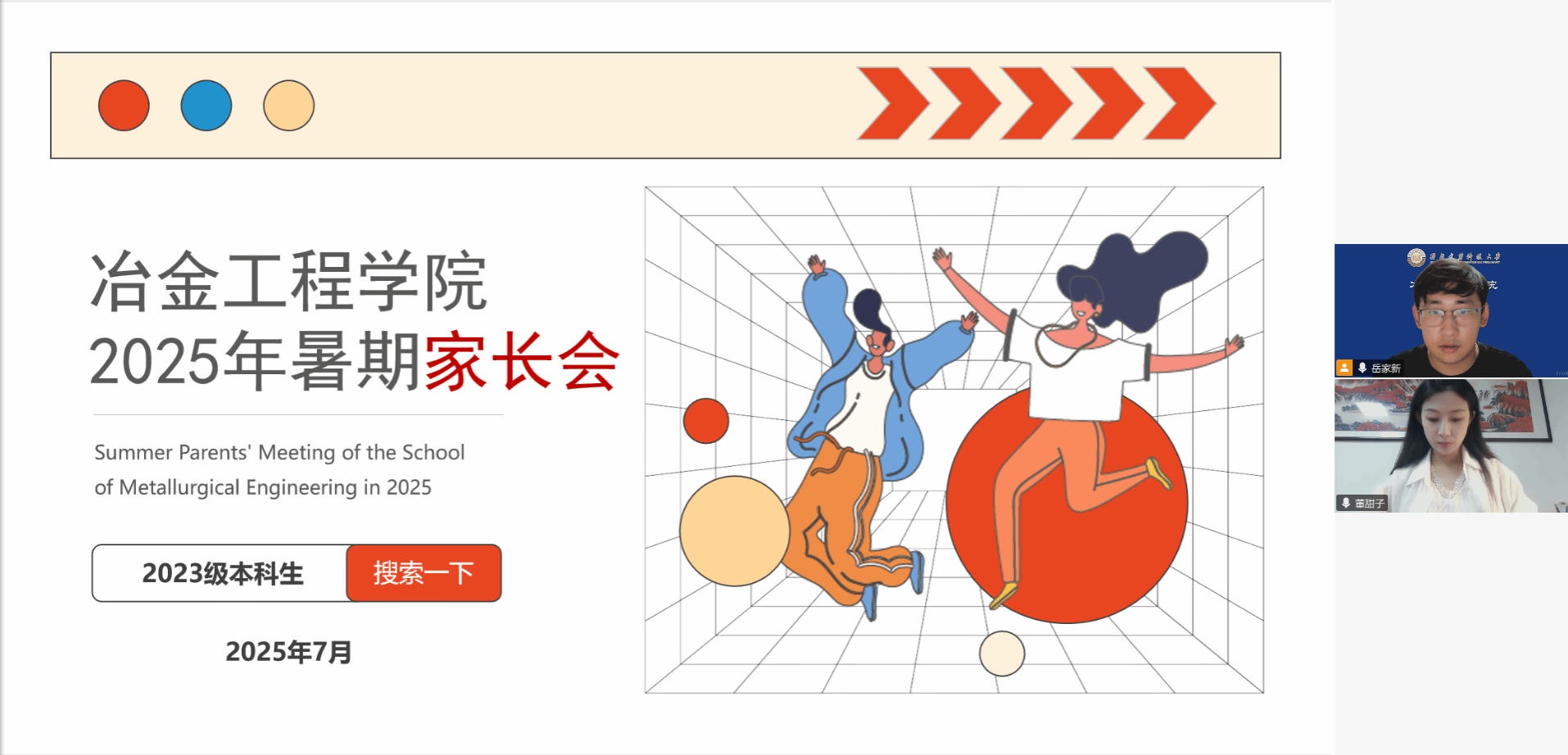 为落实立德树人根本任务,深化家校协同育人机制,助力学生全面发展,7月28日下午,西安建筑科技大学冶金工程学院2023级本科生2025年学情分析暨暑期安全教育家长会在线上召开。学院团委副书记、2023级辅导员董甜子,2023级辅导员岳家新出席会议,全体2023级本科生家长参会。