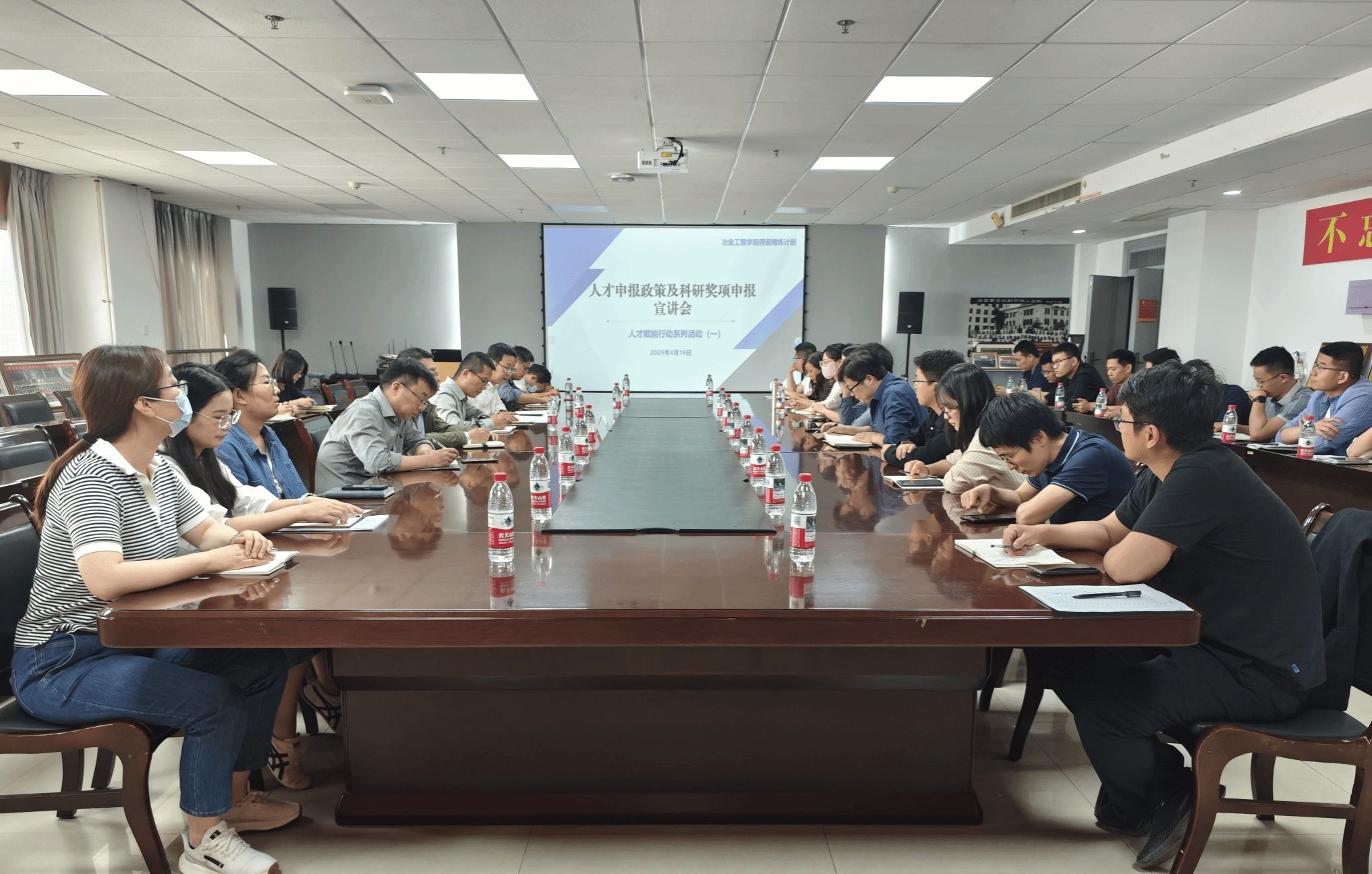 4月16日下午,冶金工程学院在工科大楼1106举办“人才赋能行动”系列活动—人才申报政策及科研奖项申报宣讲会,学院科研团队负责人、师资精炼计划入选者以及部分青年教师参加了本次会议。会议由学院党委副书记、副院长赵福才主持。