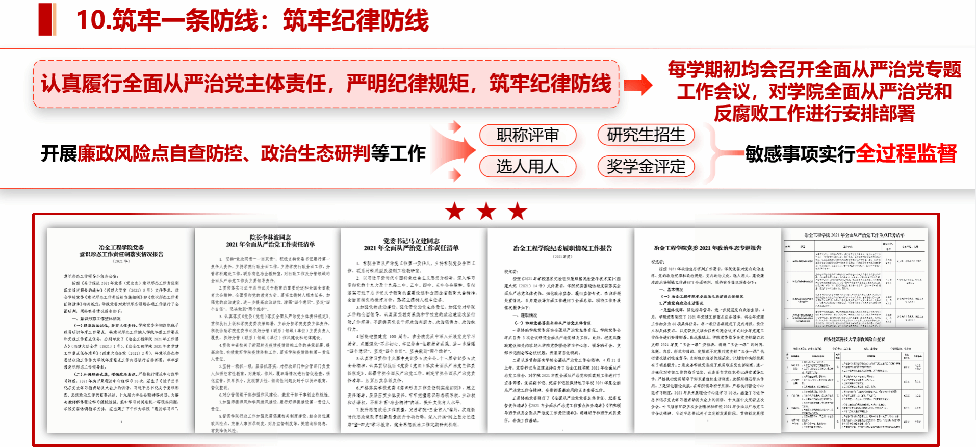 学院党委连续被评为“先进党委”,首批入选学校“党建工作示范学院”,获批“全省党建工作标杆院系”,成为全校第一个党建、团建省级“双标杆”创建学院,学院团委获“全国钢铁行业五四红旗团委(标兵)”。1个党支部入选“全国党建工作样板支部”,2个党支部入选“全省党建工作样板支部”,4个党支部入选校“党建工作样板支部”,获批“双带头人”教师党支部书记工作室2个。一流专业、一流课程、国家级人才、国家自然科学基金重点项目、国家重大科研仪器研制项目、国家重点研发计划项目都实现新突破。连续荣获“年度考核优秀学院”,荣获“陕西省师德建设先进集体”荣誉称号。