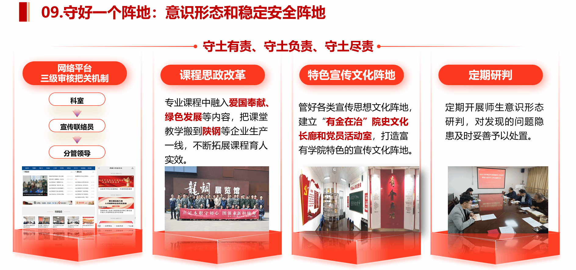 学院党委认真学习贯彻落实习近平新时代中国特色社会主义思想,以马克思主义系统观为指导,紧紧围绕党的政治建设、思想建设、组织建设、作风建设、纪律建设、制度建设,构建了“十二个一”党建工作新格局,开展了一系列理论探索和实践活动。