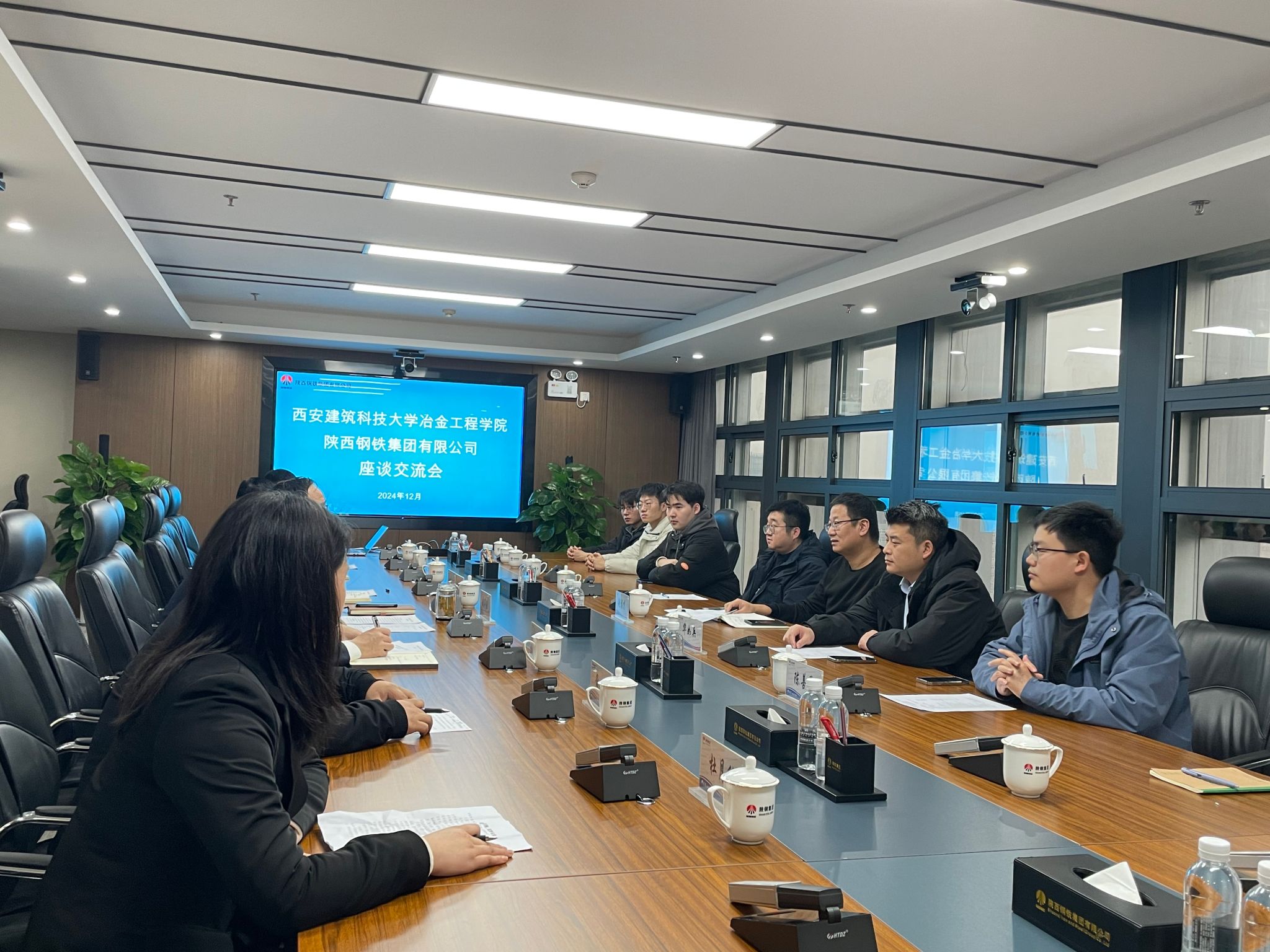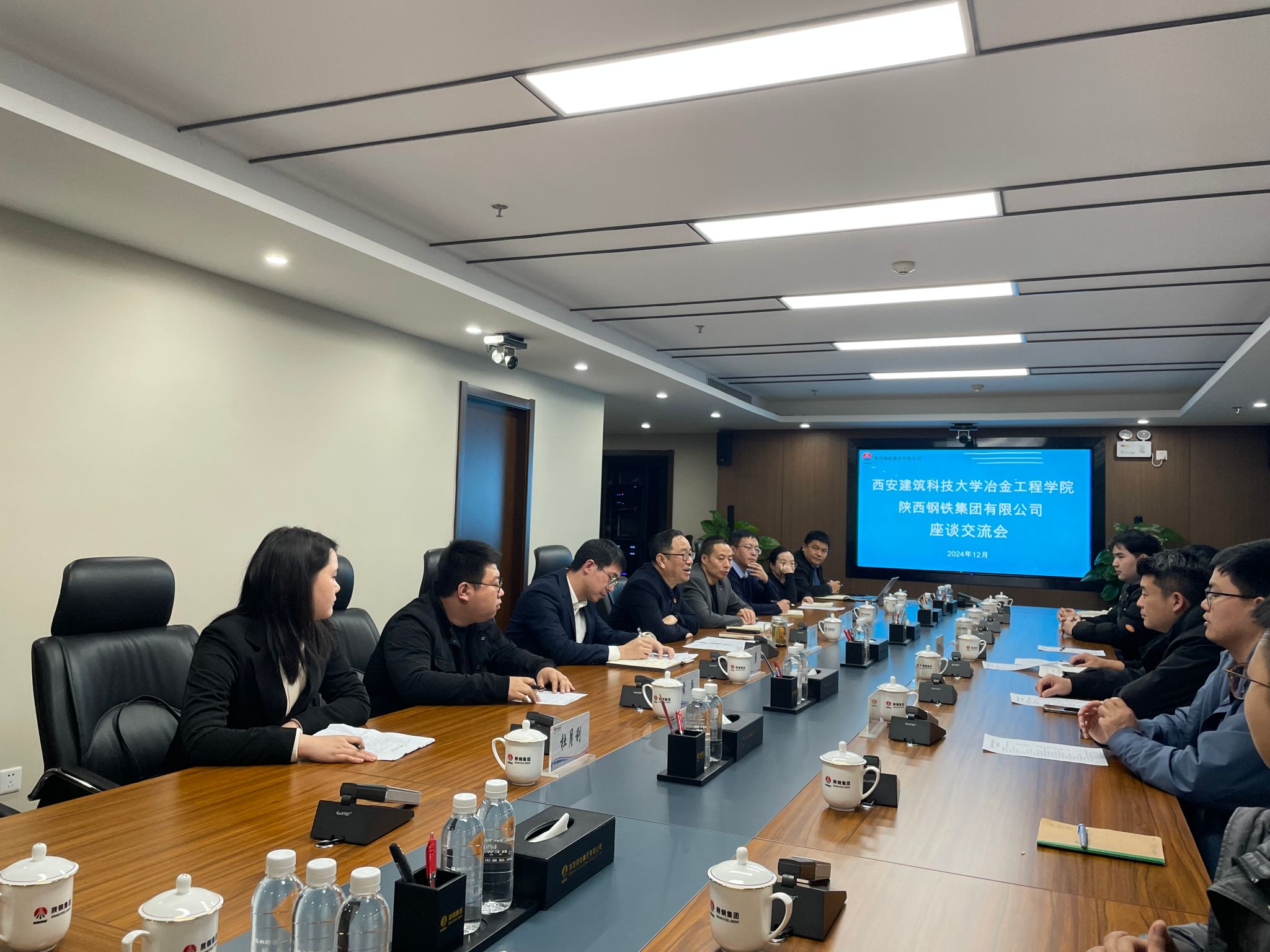 武军强对学院一行表示了热烈的欢迎,他从陕西钢铁集团有限公司的企业发展、基本情况和近年来的生产、经营状况等方面进行了详细介绍,对过去与学院各方面的校企合作给予了高度肯定,并期待与冶金学院今后在招聘就业和校企协同人才培养模式创新等方面进一步加深合作,力求“让学生就好业、让企业选好才”,推动互利共赢。
