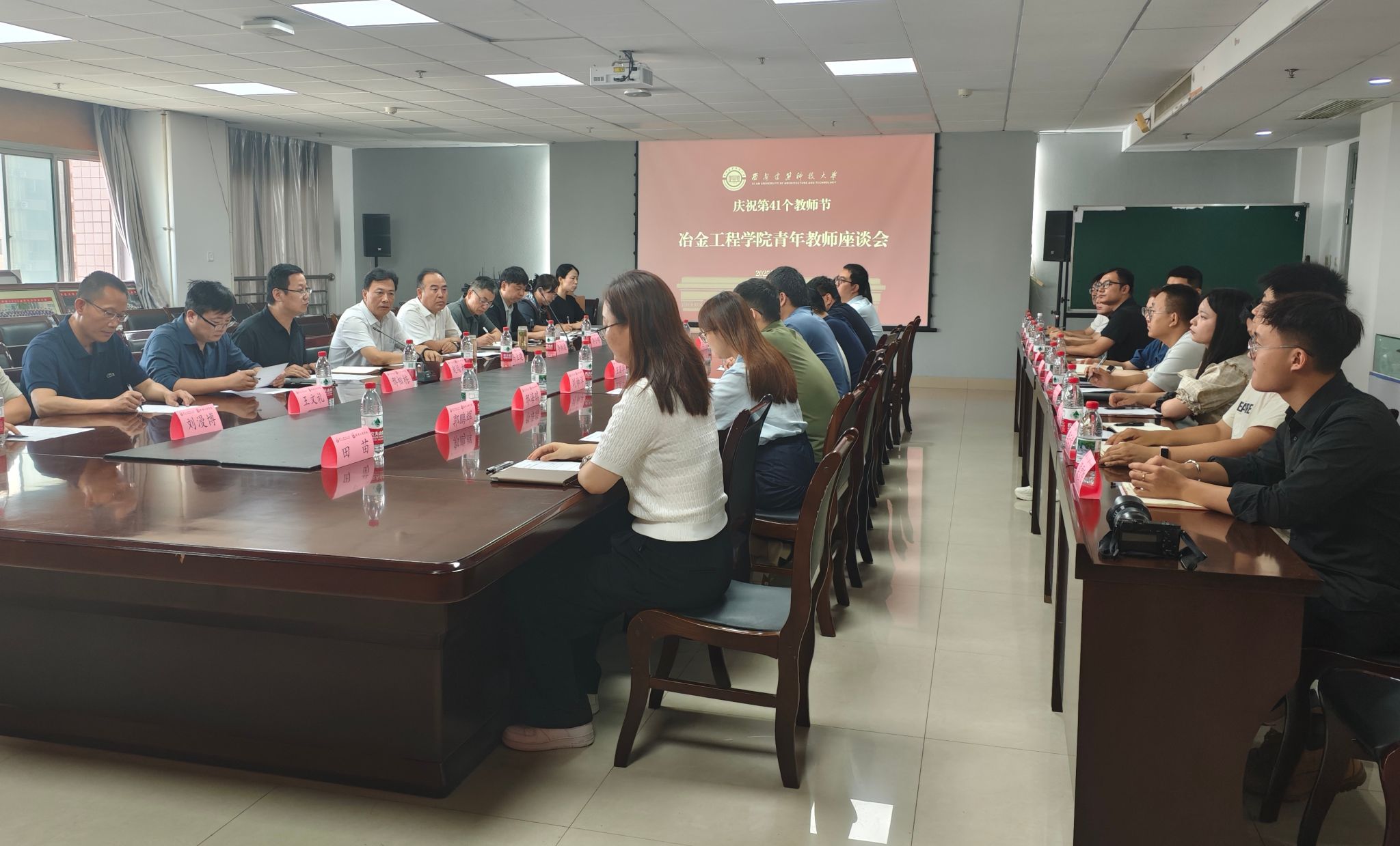 9月9日上午,学院举办了青年教师座谈会。学院领导班子成员、系主任、教工党支部书记以及20余名青年教师齐聚一堂,围绕青年教师成长成才展开了深入交流。青年教师们结合自身工作实际,分享了教学中的经验与困惑,对学院的发展提出了建设性意见。学院领导认真倾听每一位青年教师的发言,对大家的辛勤付出表示感谢,并针对提出的问题和建议给予了积极回应,鼓励青年教师们勇挑重担、砥砺前行,在教育教学和科研创新中展现新作为。