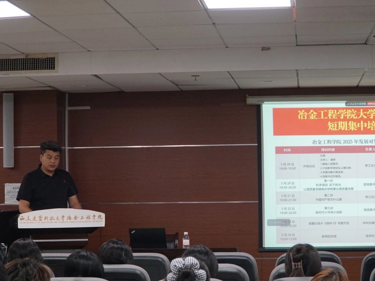 为加强党员发展对象的政治素养和理想信念教育,冶金工程学院于5月20日至6月4日举办了2025年发展对象培训班。通过系统性的理论学习、实践体验和思想交流,引导学员深化对党的认识,明确党员的责任和使命,巩固向党组织靠拢的思想基础。