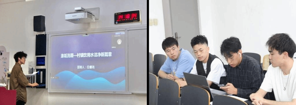 答辩过程中,各参赛团队限时8分钟,从项目背景、市场分析、项目创新,项目成果和营销策略等方面进行项目展示。答辩完成后,评委老师从项目的创新之处、技术性、可行性、所存在的问题等方面对项目答辩人进行提问,答辩人紧扣老师们的问题进行深入思考后详细回答。问答结束后,评委老师对答辩项目不足处提出建议,参与答辩的同学虚心听取意见,受益匪浅。