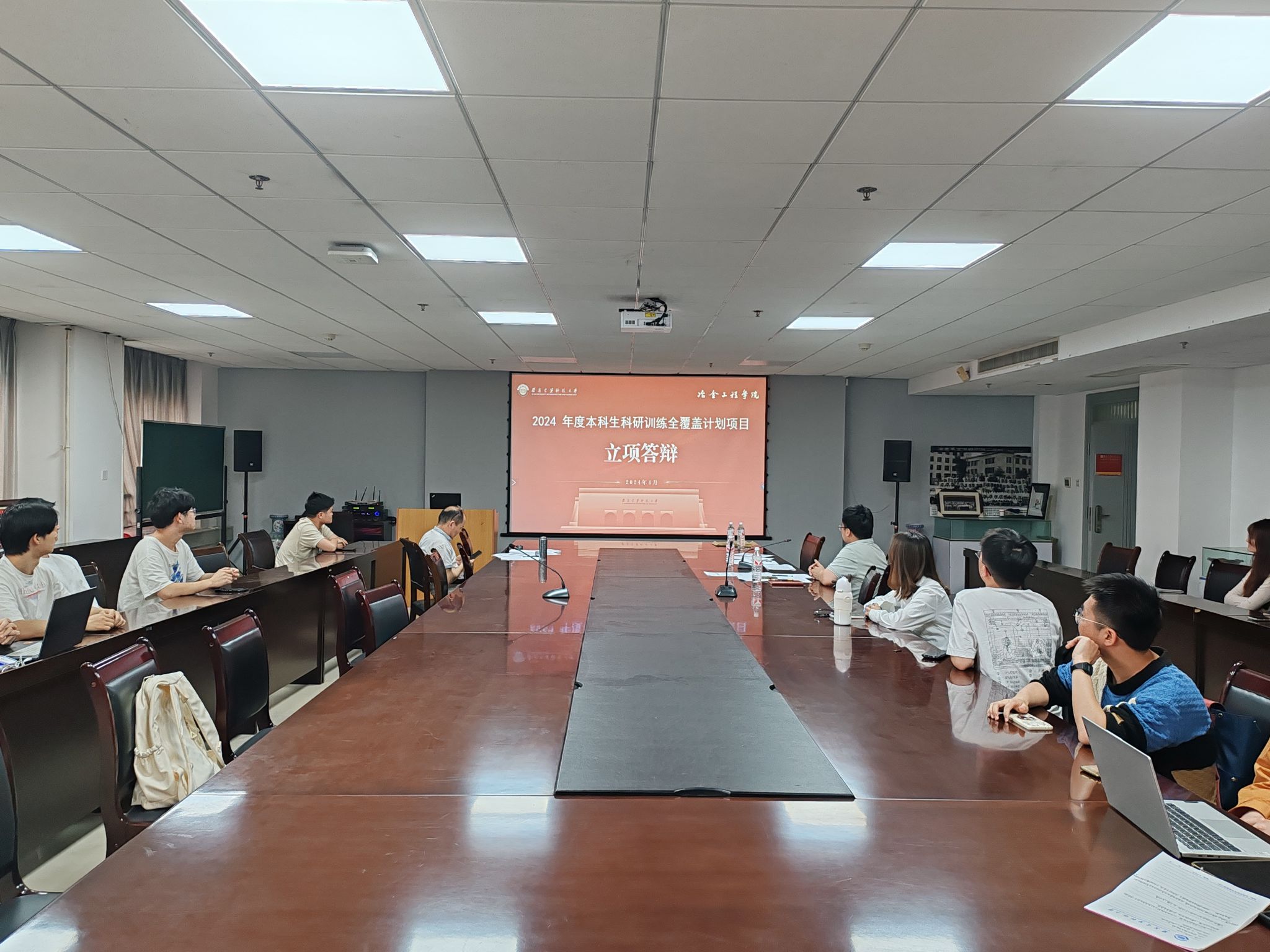 在工科大楼1106会议室,2023年大创项目负责人精心准备PPT,结合结题要求陈述课题成果以及项目组成员在课题的实际工作。2024年新申请立项的同学提前来1106会议观摩学习上一年度的结题答辩会,同时项目负责人也精心准备PPT,围绕着对项目的认识和项目中如何开展进行讲述。三位评委老师认真听取汇报,并质询结题成果及开展情况。