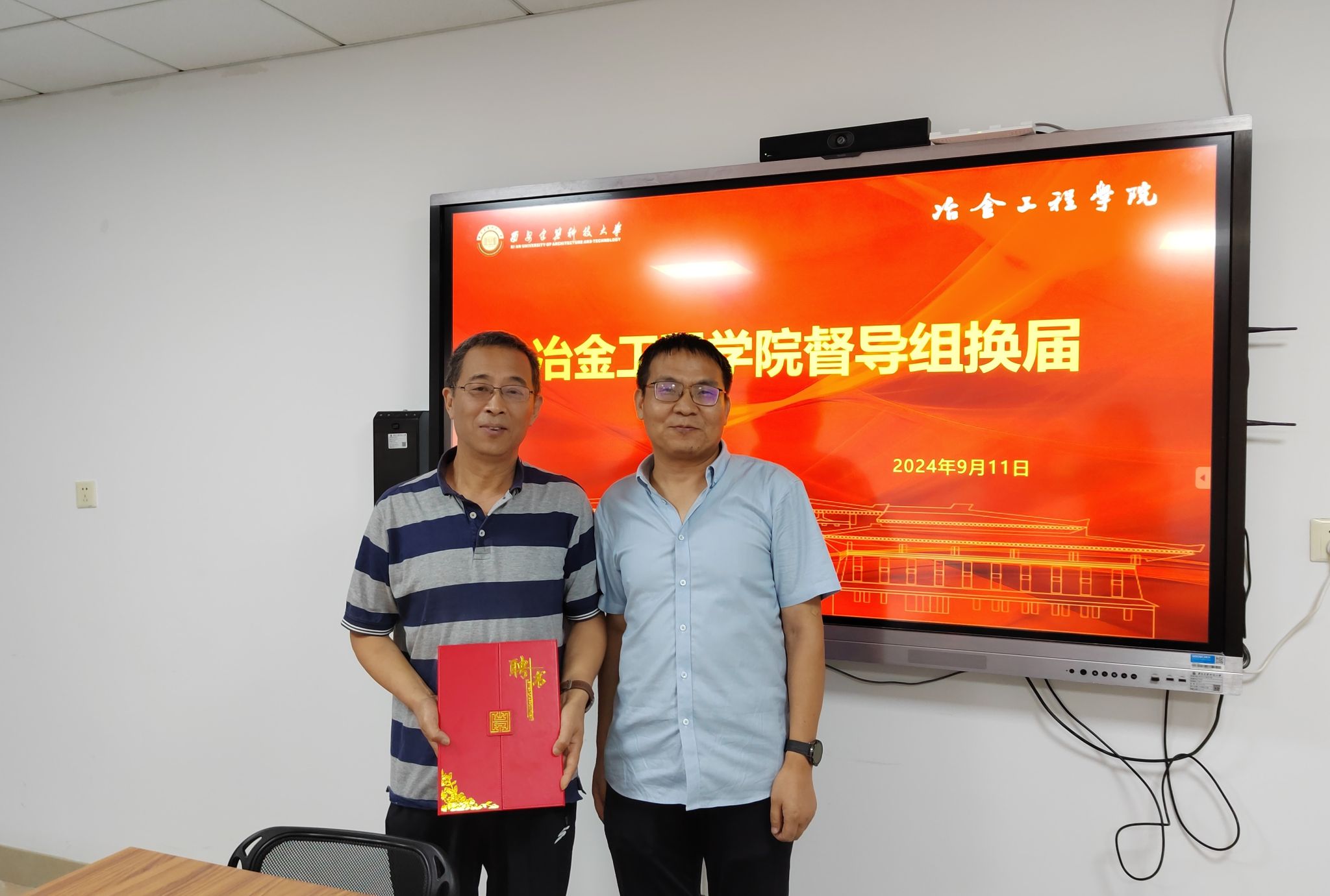为适应新时代高等教育的新使命、新特征,推进工程教育理念的不断深化,加强本科教学工作的持续改进,提高督导队伍运用互联网+教育的能力,在本次督导聘任中吸纳了学术造诣高、教学及管理理念先进、多次参加工程教育评估的退休和在职教师,组建学院第二届本科教学督导组,于2024年9月11日举行了新老督导组成员换届仪式,各专业教研室主任参加了会议。