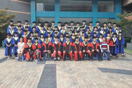 典礼在雄壮的校歌合唱声中结束,学位授予仪式随即举行。身着学位服的毕业生代表怀着激动的心情,依次走上前台,深鞠一躬谢师恩,院长为他们扶正流苏,颁发学位证书并合影留念