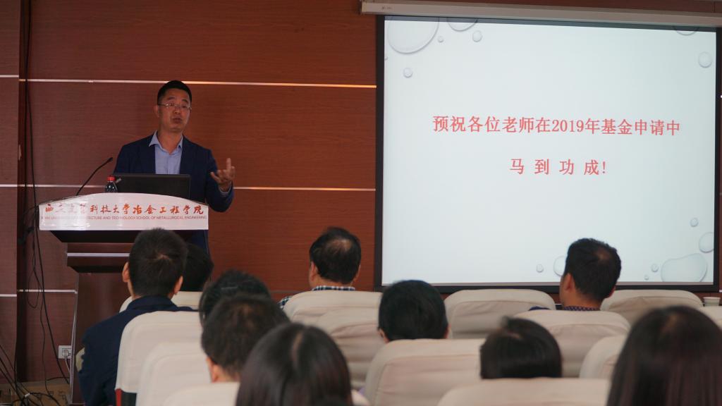 为了做好2019年国家自然科学基金申报工作,提高国基金获准率,2018年10月11日在工科楼1111成功召开了本院2019年国基金动员暨国基金专项学术报告会。科技处处长刘彦峰、冶金学院全体教师及部分学生参加了此次报告会。