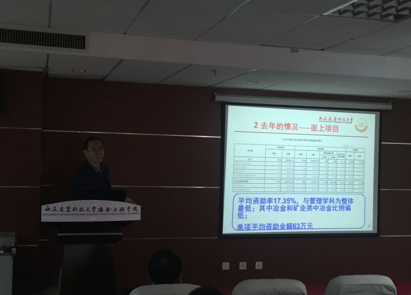 此次报告邀请了2016国家自然科学基金面上项目获得者,冶金工程学院冶金工程学科学术带头人赵俊学教授,报告题目为“国家自然科学基金申请书撰写的几点体会”。报告会上,赵教授通过自己在近几年申报国基金中的经历,与大家分享怎样撰写一本高质量的国基金申请书。并从申请人的角度以及国基金评审专家的角度分别阐述了如何更有效的提高国基金的命中率。