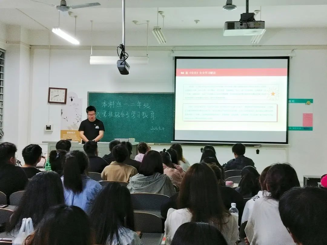 短片放映结束后,主持人向同学们展示《党章》的相关内容,并要求所有人朗读。大家用最铿锵、最认真的声音朗读,每一字都注入了同学们对中国共产党深沉的热爱与崇敬,每一句都流露出同学们发扬党的二十大精神的决心!
