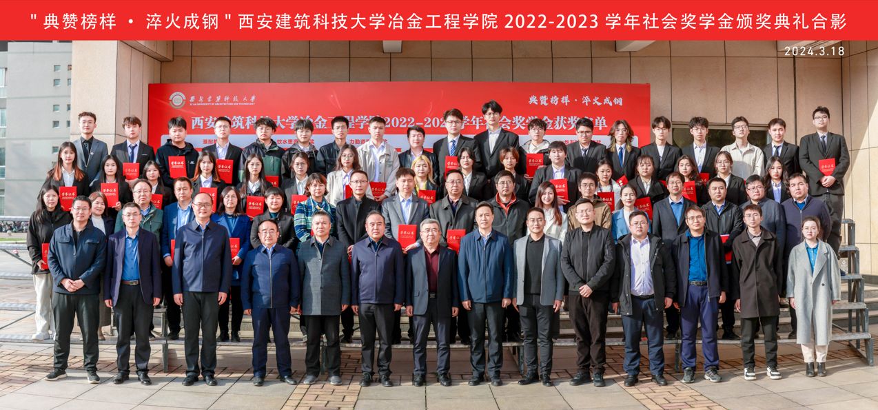 3月18日下午,“典赞榜样·淬火成钢”西安建筑科技大学冶金工程学院2022-2023学年社会奖学金颁奖典礼在雁塔校区工科楼三楼会议室举行。濮阳濮耐高温材料(集团)股份有限公司人力资源部副部长任学强,宁波力勤资源科技股份有限公司人力资源副总监谢晟,联合荣大企业集团总裁徐吉龙,浙江华友钴业股份有限公司集团人力资源部部长张振宇,冶金工程学院党委书记马立建、院长李林波、副院长杨西荣、副院长李小明出席此次颁奖典礼,获奖师生代表、机关各科(室)负责同志以及部分学生代表参加了典礼。典礼由冶金工程学院党委副书记、副院长张佩主持。