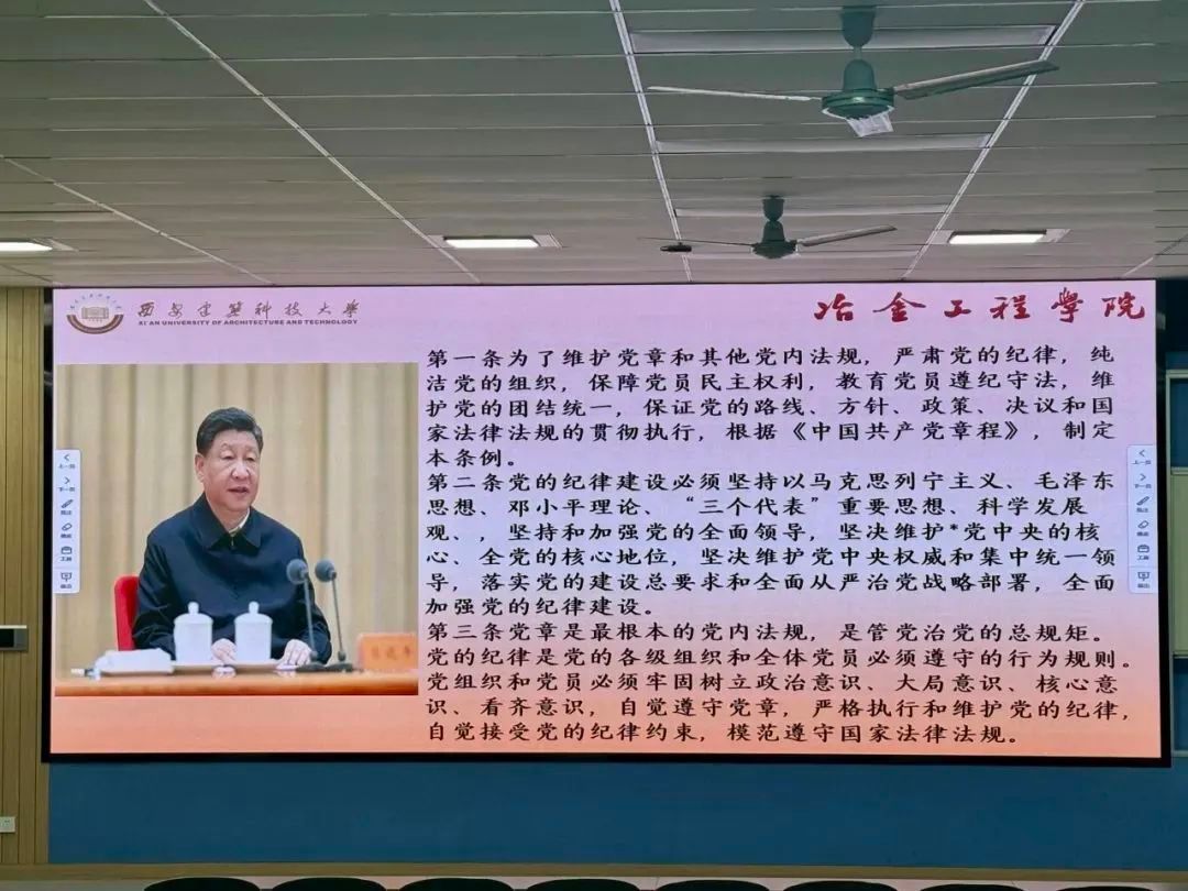 为深入学习贯彻习近平总书记关于党纪学习教育的重要讲话、重要指示精神,围绕《中国共产党纪律处分条例》,加强党的纪律建设,推动全面从严治党向纵深发展。冶金工程学院本科生一二年级党支部于2024年5月10日19:00在学府城14-101开展集体学习活动——“学习党纪教育,争做优秀党员”。全体中共预备党员、发展对象、入党积极分子参与此次活动。