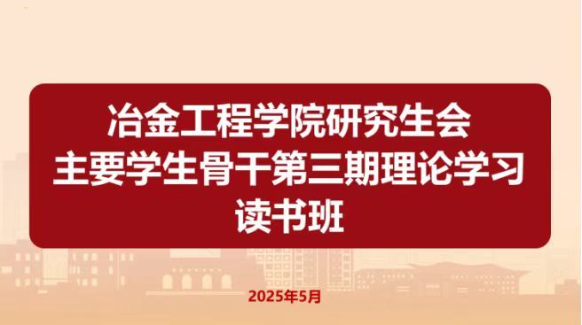 冶金学院研究生会理论学习读书班系列活动通过“理论学习+经典领学+时政热点”的形式,认真学习研讨,强化思想淬炼,筑牢信仰之基,不断推动思想教育入脑入心、见行见效。我院研究生会将持续深化作风建设,把学习成果转化为服务师生、推动工作的实际行动。