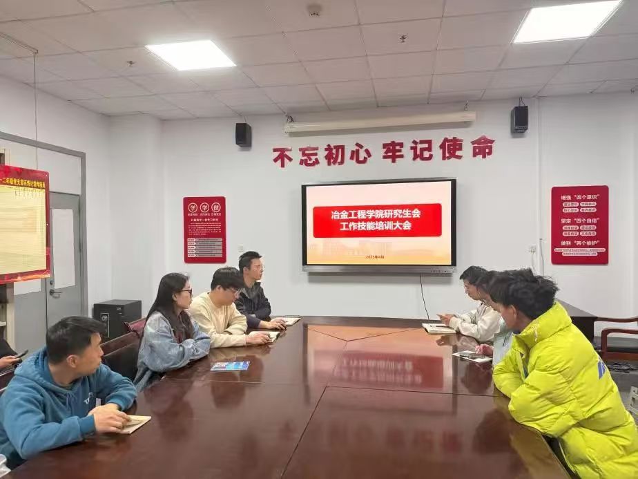 为了进一步提升冶金学院研究生会工作人员的技能水平与综合素质,促进研究生会成员之间的学习与沟通,提高研究生会整体工作质量和效率。4月23日晚,冶金学院研究生会于工科楼103会议室开展了工作技能培训会,本次培训会由院研究生会执行主席张浩天主持,研究生会全体工作人员参会。
