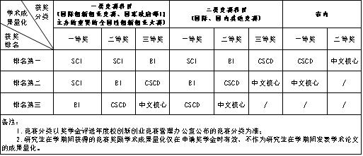 ⑦ 研究生在学期间获得省级及其以上竞赛奖励且获奖单位为西安建筑科技大学,按照以下规定进行界定: