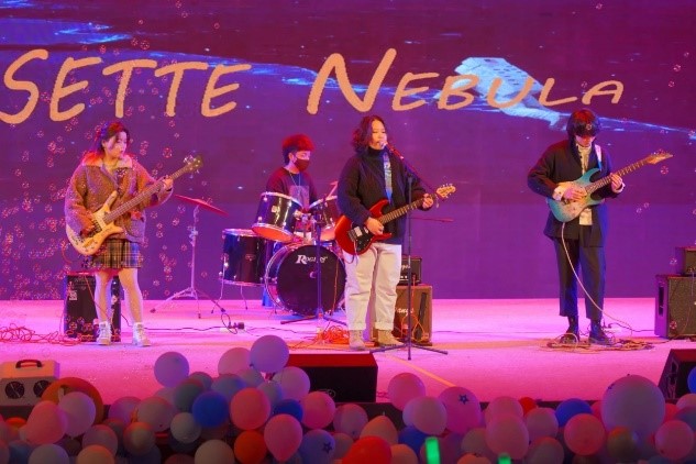 玫瑰星云乐队带来了开场演奏,将此次晚会的气氛完美带动起来。“这朵世间最美好的玫瑰,星尘为泥,银河滋养。是一朵永远不会枯萎的玫瑰,是藏在这宇宙中我对你永恒的浪漫”。舞台皆暗的时候唯有玫瑰星云乐队在台上闪闪发光。演奏之时架子鼓、吉他、贝斯,它们每一个的声音都激昂,而歌声温柔,跨越一整个礼堂,浪漫而隽永,热烈而永恒。